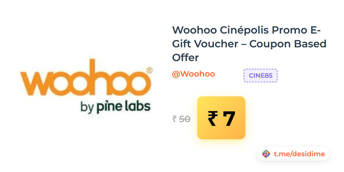 86% off on - Woohoo Cinépolis Promo E-Gift Voucher – Coupon Based Offer - Rs. 7