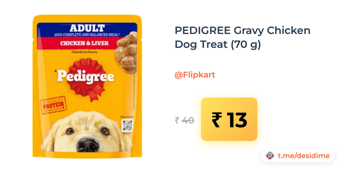 68% off on - PEDIGREE Gravy Chicken Dog Treat (70 g) - Rs. 13