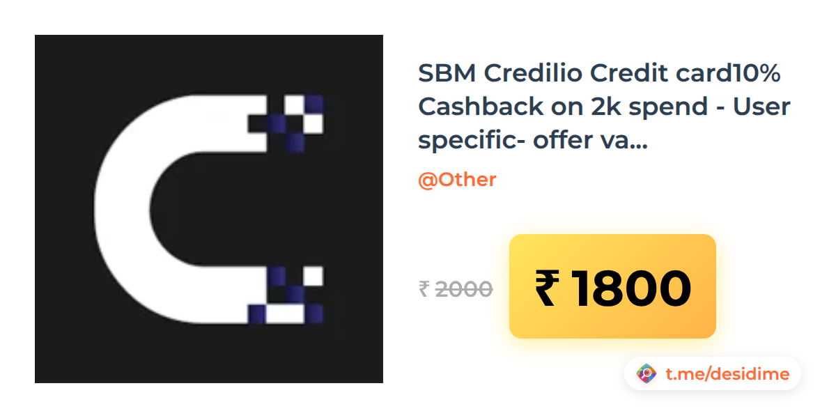 10% off on - SBM Credilio Credit card10% Cashback on 2k spend - User specific- offer validity 12-31jan - Rs. 1800