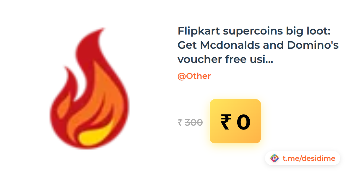 100% off on - Flipkart supercoins big loot: Get Mcdonalds and Domino's voucher free using supercoin - Rs. 0