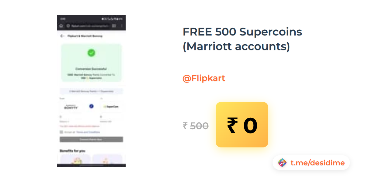 100% off on - FREE 500 Supercoins (Marriott accounts) - Rs. 0