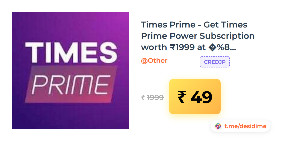 98% off on - Times Prime - Get Times Prime Power Subscription worth โ‚น1999 at โ‚น49 - Rs. 49