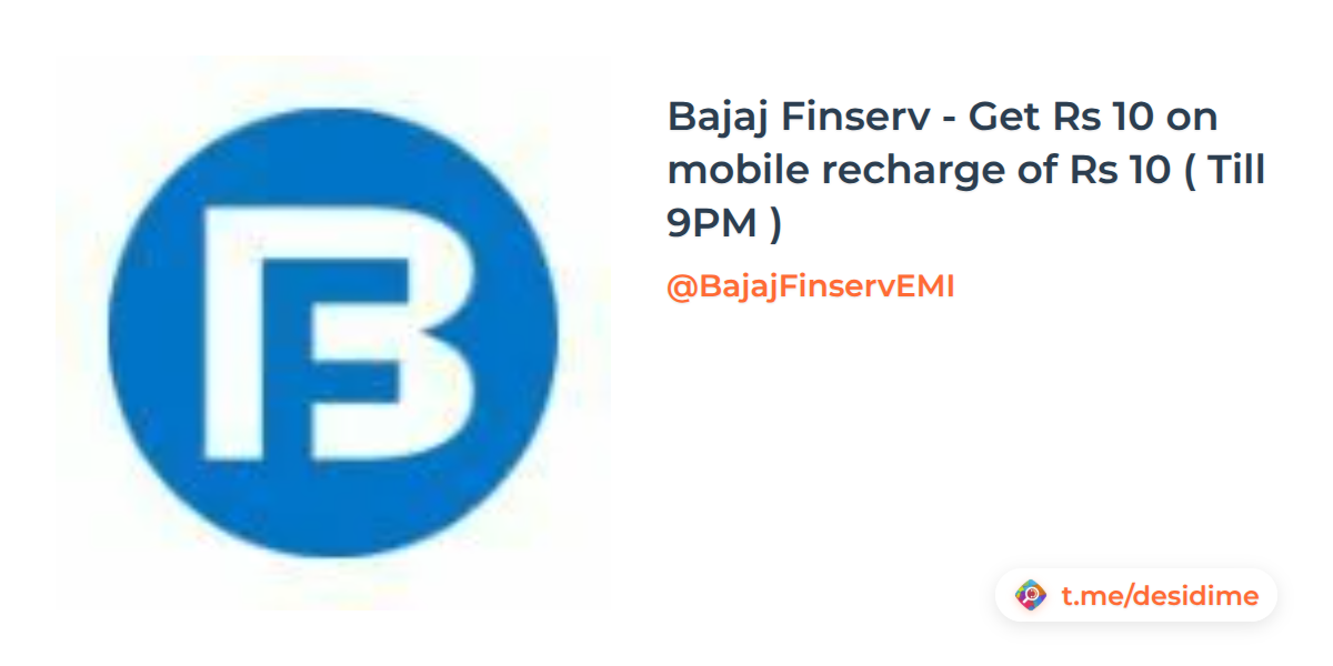 Bajaj Finserv - Get Rs 10 on mobile recharge of Rs 10 ( Till 9PM )