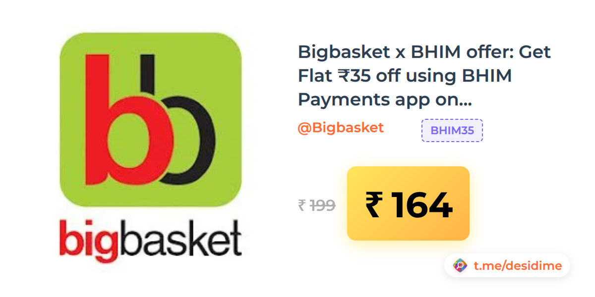 🌡291° - Bigbasket x BHIM offer: Get Flat ₹35 off using BHIM Payments app on orders above ₹199 from Bigbasket (Maybe User specific)