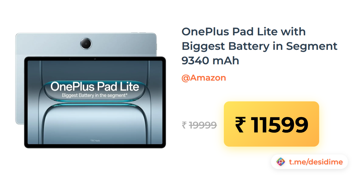 42% off on - OnePlus Pad Lite with Biggest Battery in Segment 9340 mAh - Rs. 11599