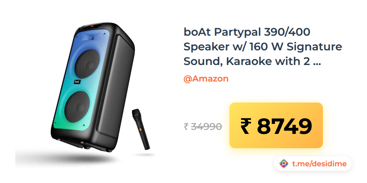75% off on - boAt Partypal 390/400 Speaker w/ 160 W Signature Sound, Karaoke with 2 Microphone Input Ports - Rs. 8749
