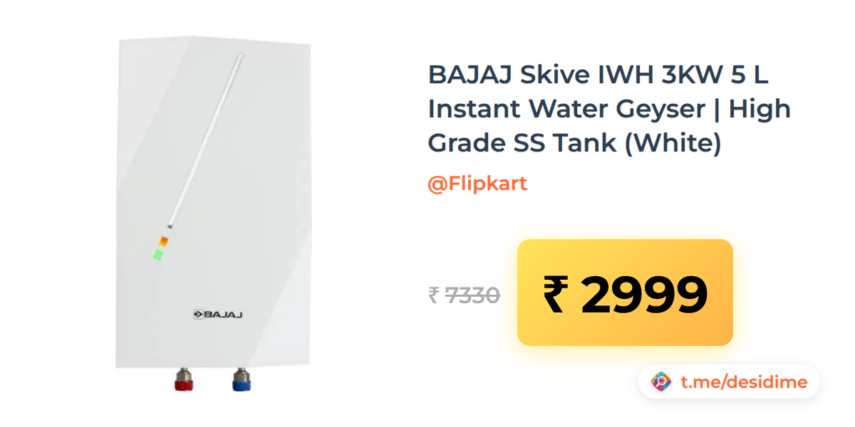 59% off on - BAJAJ Skive IWH 3KW 5 L Instant Water Geyser | High Grade SS Tank (White) - Rs. 2999