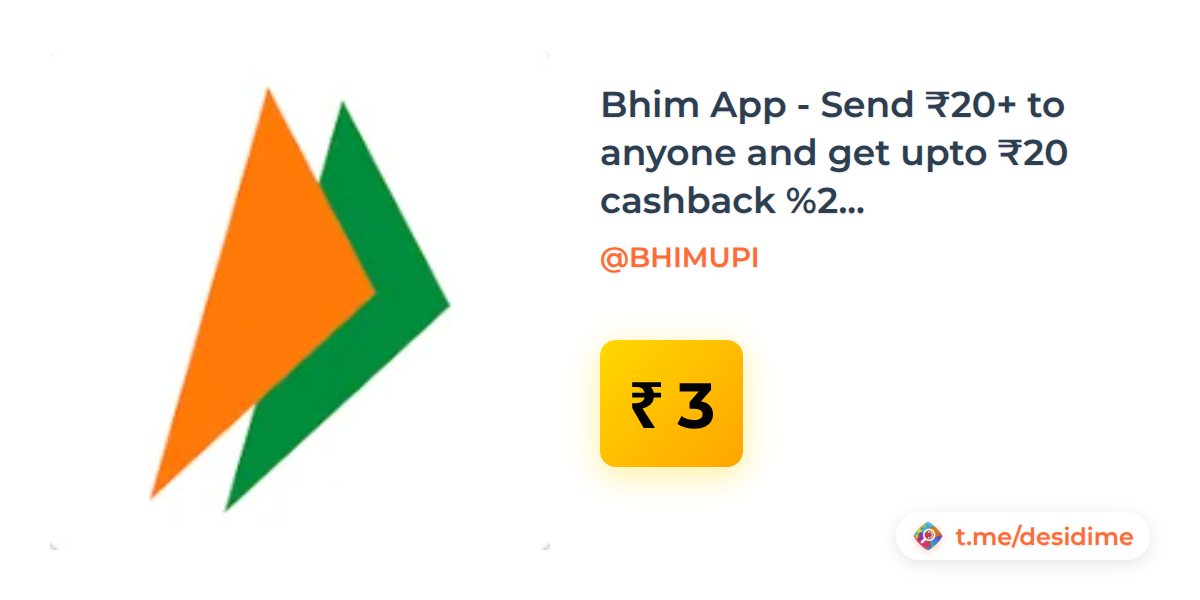 Bhim App - Send ₹20+ to anyone and get upto ₹20 cashback (assured ₹3) 3pm-5pm - Rs. 3