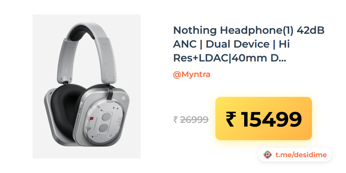 43% off on - Nothing Headphone(1) 42dB ANC | Dual Device | Hi Res+LDAC|40mm Driver | Sound By KEF Bluetooth - Headphones - Rs. 15499