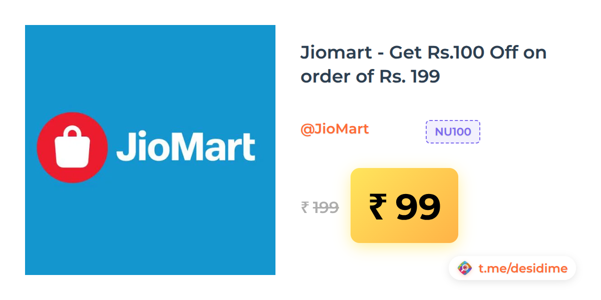 50% off on - Jiomart - Get Rs.100 Off on order of Rs. 199 - Rs. 99