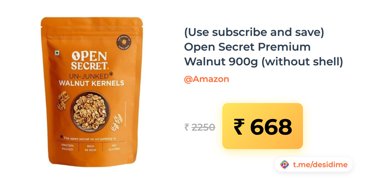 70% off on - (Use subscribe and save) Open Secret Premium Walnut 900g (without shell) - Rs. 668