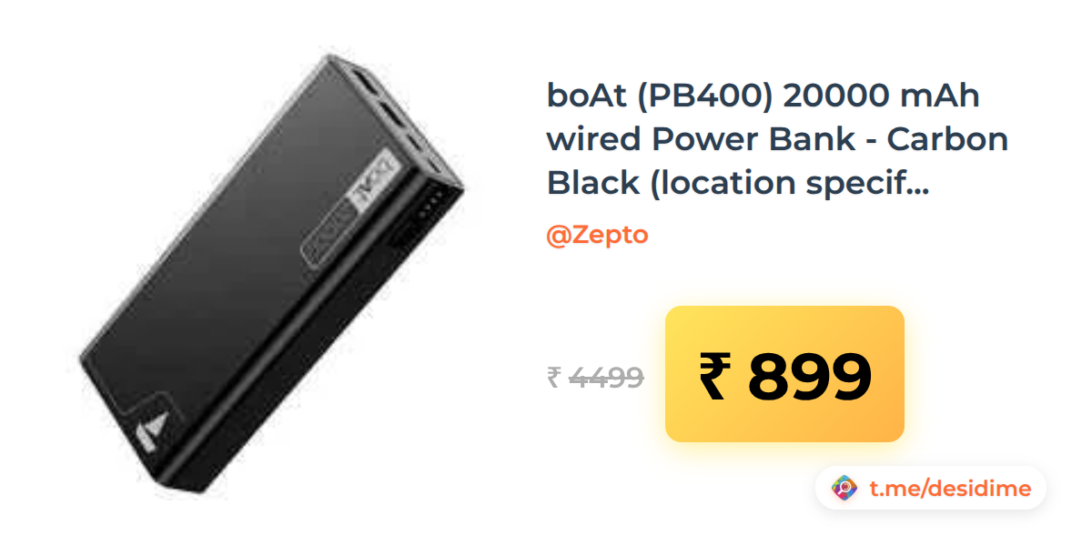 80% off on - boAt (PB400) 20000 mAh wired Power Bank - Carbon Black (location specific) - Rs. 899