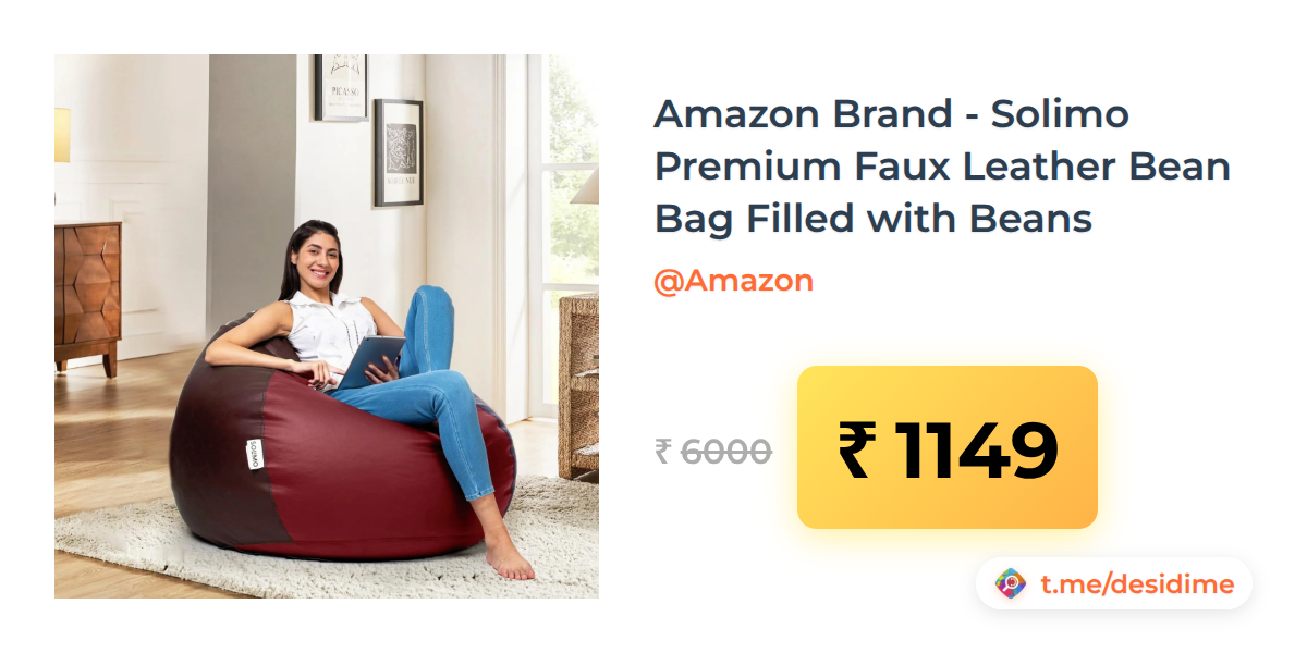 81% off on - Amazon Brand - Solimo Premium Faux Leather Bean Bag Filled with Beans - Rs. 1149