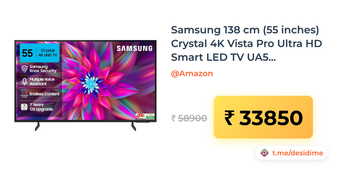 43% off on - Samsung 138 cm (55 inches) Crystal 4K Vista Pro Ultra HD Smart LED TV UA55UE86AFULXL - Rs. 33850