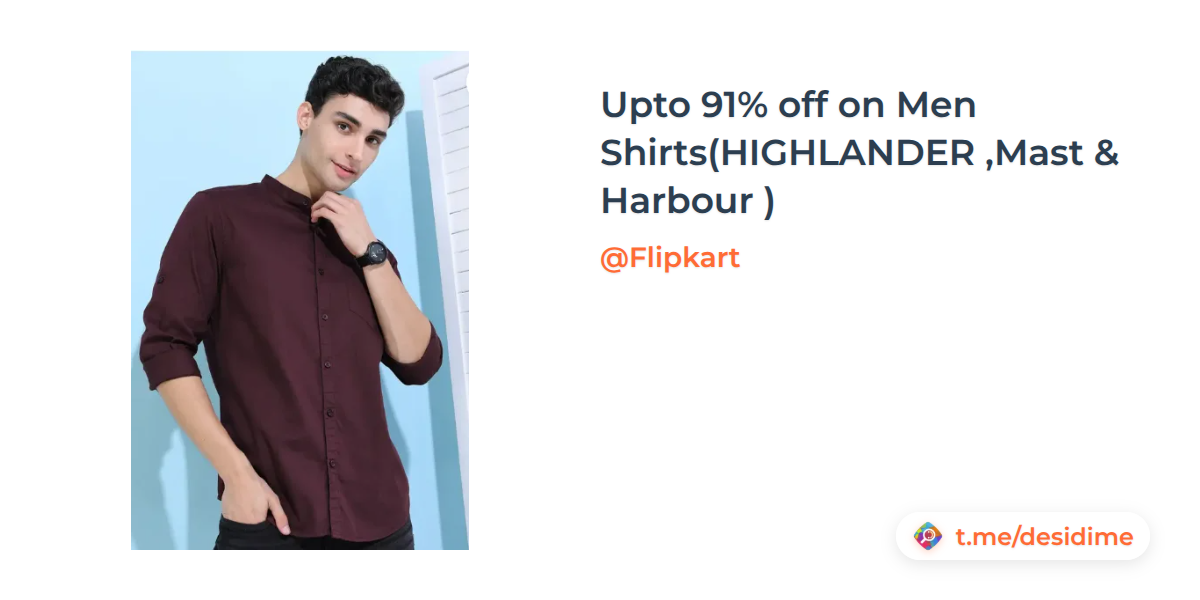 Upto 91% off on Men Shirts(HIGHLANDER ,Mast & Harbour )