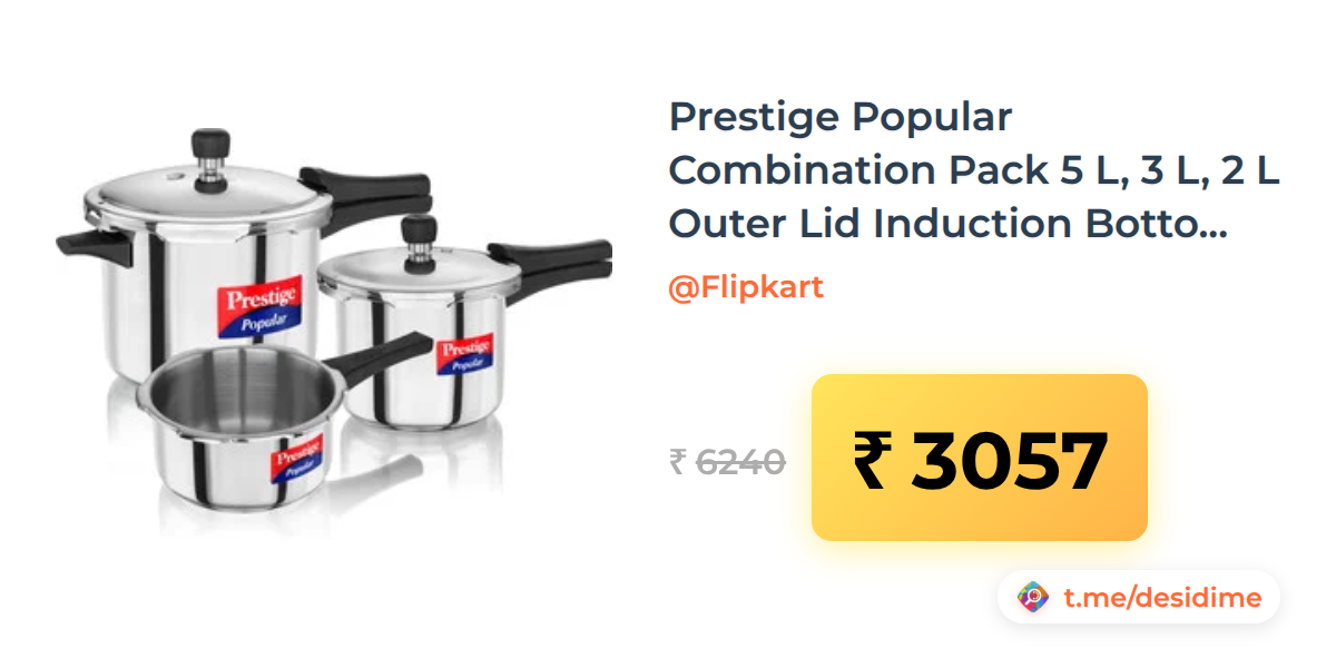 51% off on - Prestige Popular Combination Pack 5 L, 3 L, 2 L Outer Lid Induction Bottom Pressure Cooker (Stainless Steel) - Rs. 3057