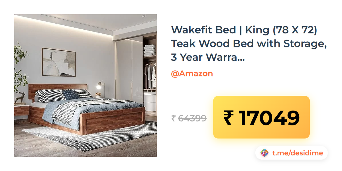 74% off on - Wakefit Bed | King (78 X 72) Teak Wood Bed with Storage, 3 Year Warranty | - Indus - Honey Finish_Brown - Rs. 17049