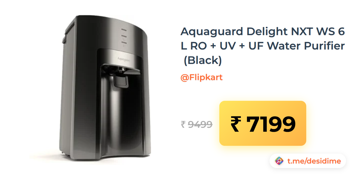 24% off on - Aquaguard Delight NXT WS 6 L RO + UV + UF Water Purifier (Black) - Rs. 7199
