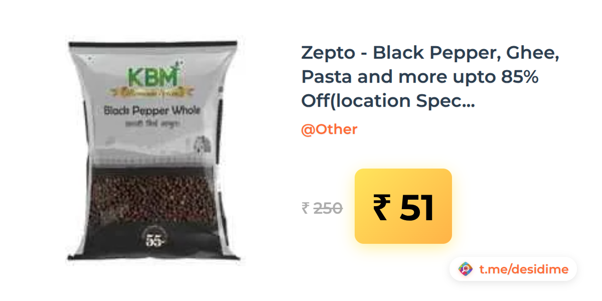 80% off on - Zepto - Black Pepper, Ghee, Pasta and more upto 85% Off(location Specific) - Rs. 51