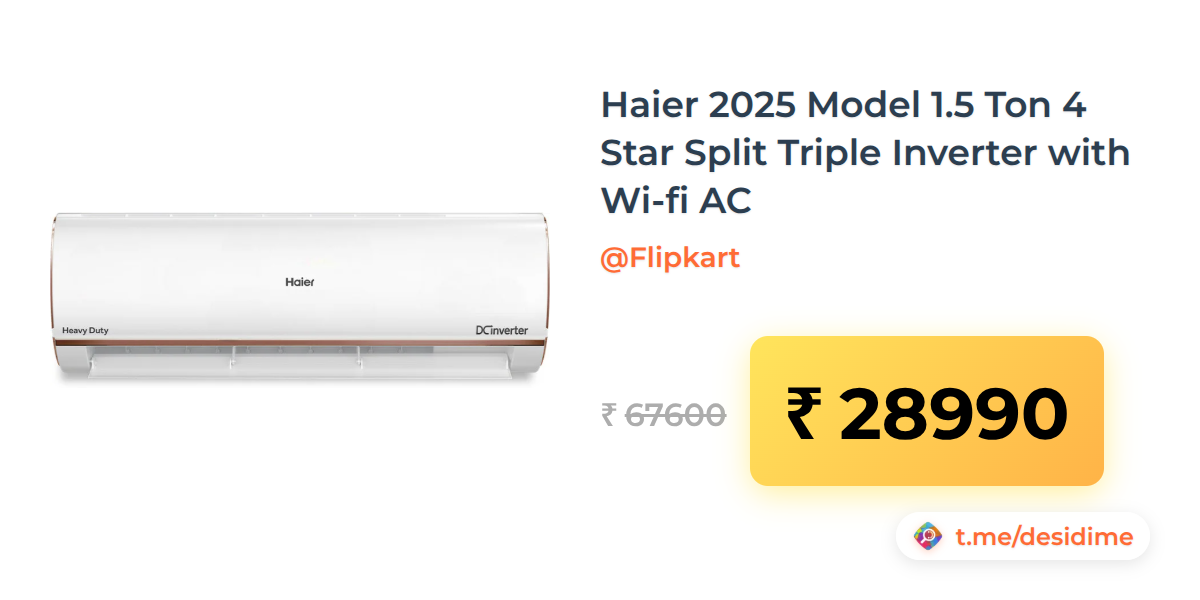 57% off on - Haier 2025 Model 1.5 Ton 4 Star Split Triple Inverter with Wi-fi AC - Rs. 28990
