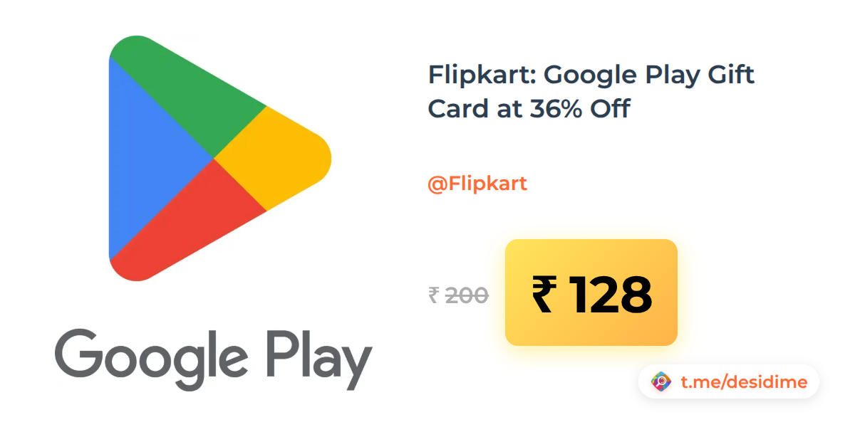 36% off on - Flipkart: Google Play Gift Card at 36% Off - Rs. 128