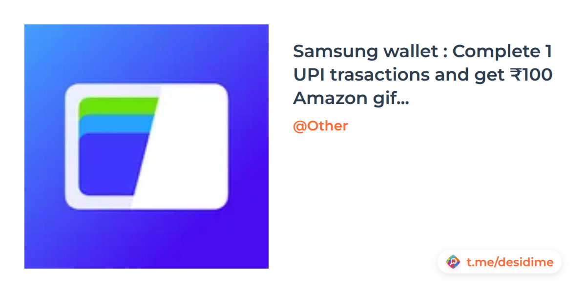 Samsung wallet : Complete 1 UPI trasactions and get ₹100 Amazon gift card