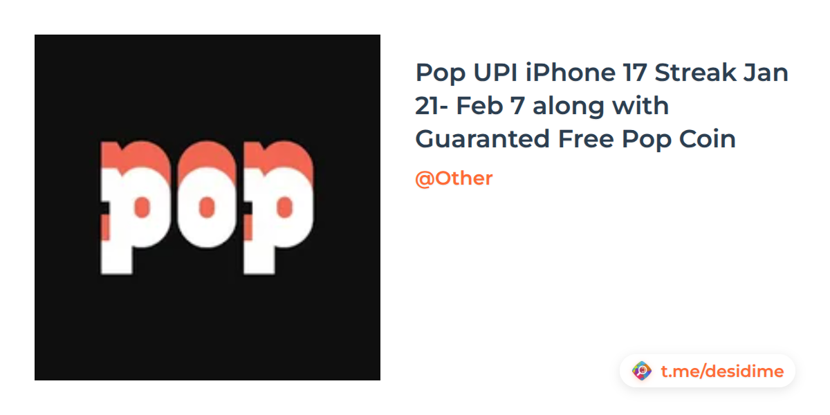 Pop UPI iPhone 17 Streak Jan 21- Feb 7 along with Guaranted Free Pop Coin