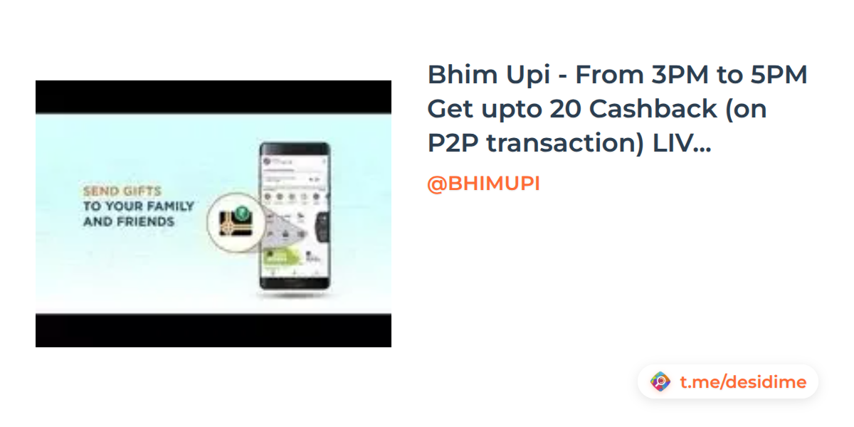 Bhim Upi - From 3PM to 5PM Get upto 20 Cashback (on P2P transaction) LIVE Now - Got 3