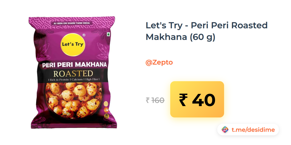 75% off on - Let's Try - Peri Peri Roasted Makhana (60 g) - Rs. 40