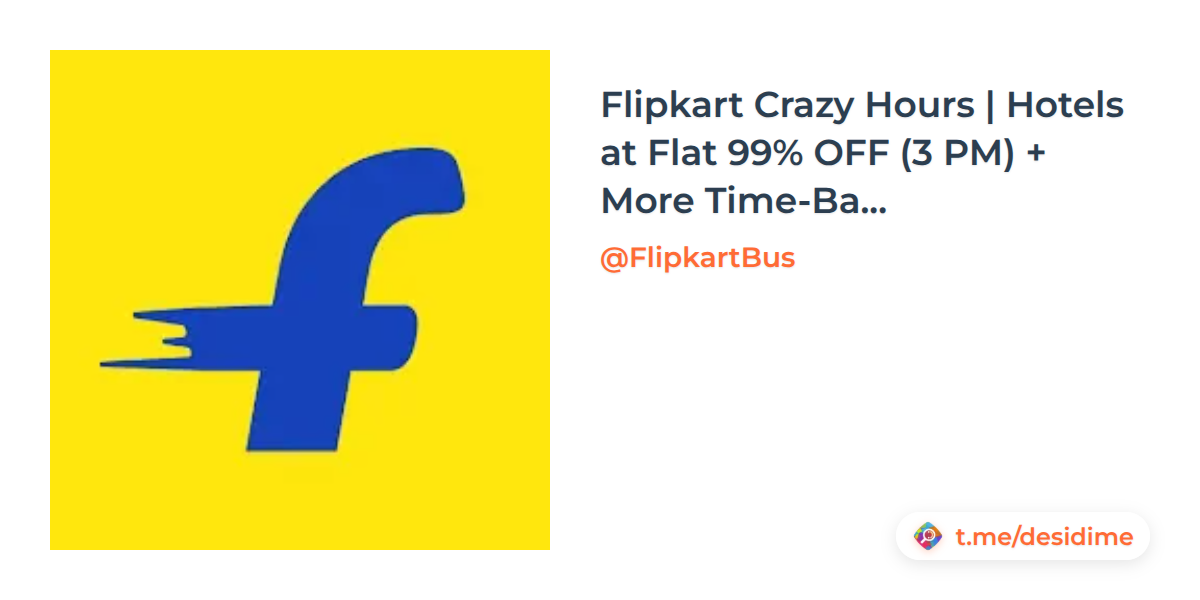 Flipkart Crazy Hours | Hotels at Flat 99% OFF (3 PM) + More Time-Based Deals