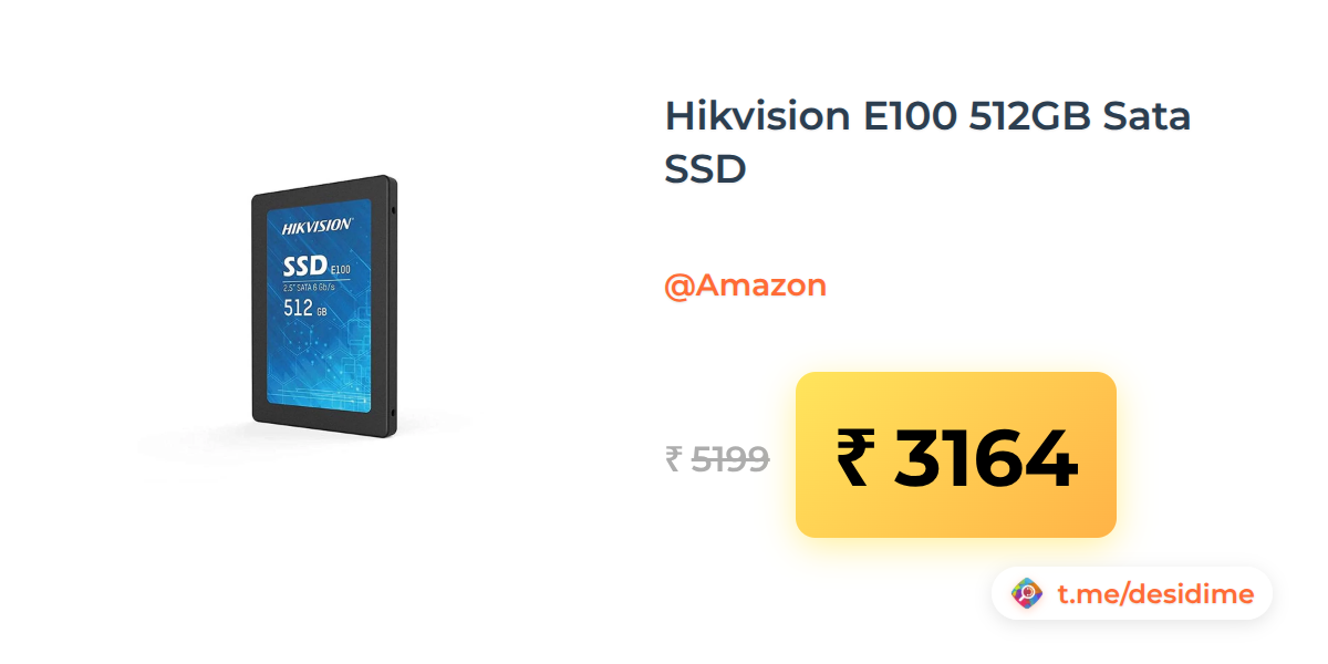 39% off on - Hikvision E100 512GB Sata SSD - Rs. 3164