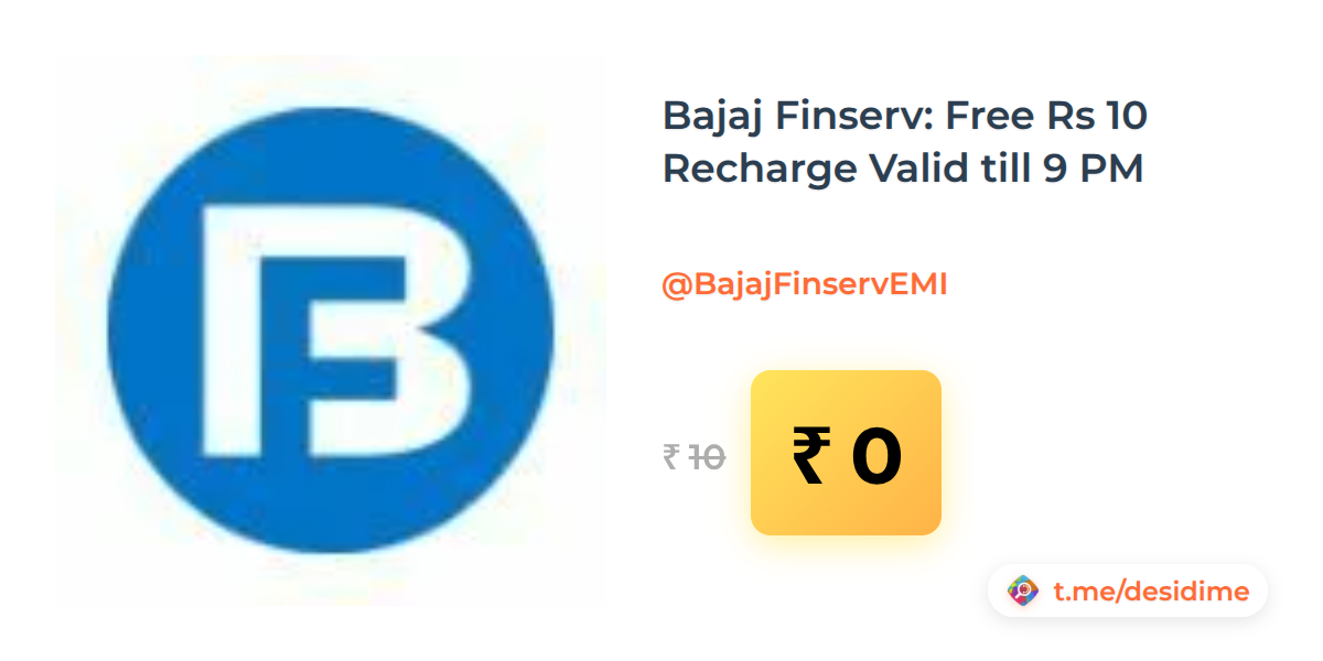 100% off on - Bajaj Finserv: Free Rs 10 Recharge Valid till 9 PM - Rs. 0