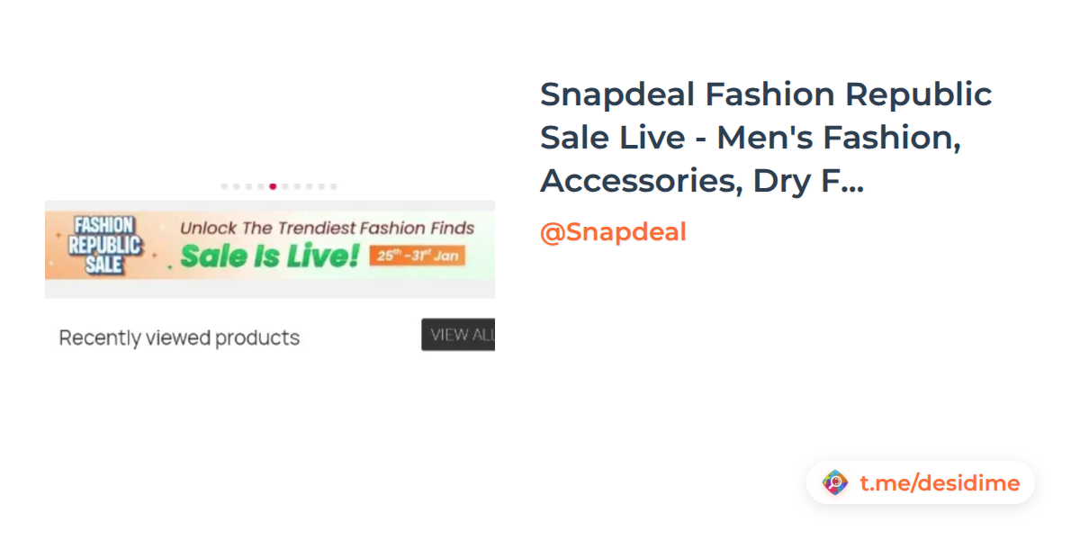 Snapdeal Fashion Republic Sale Live - Men's Fashion, Accessories, Dry Fruits & More Starting 99