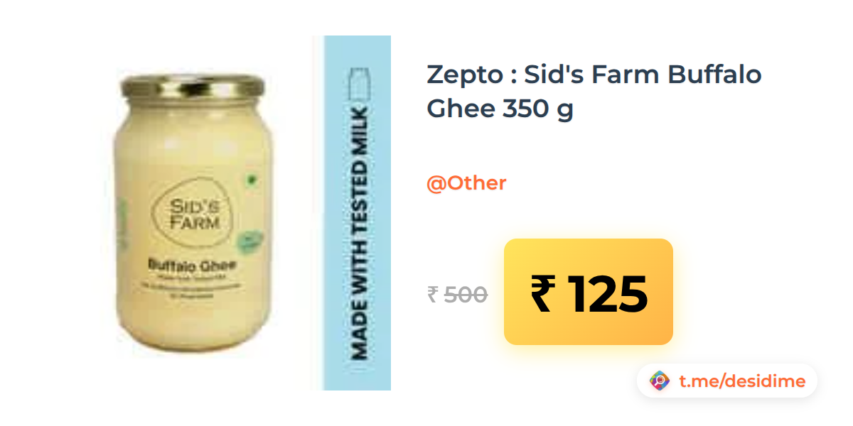 75% off on - Zepto : Sid's Farm Buffalo Ghee 350 g - Rs. 125