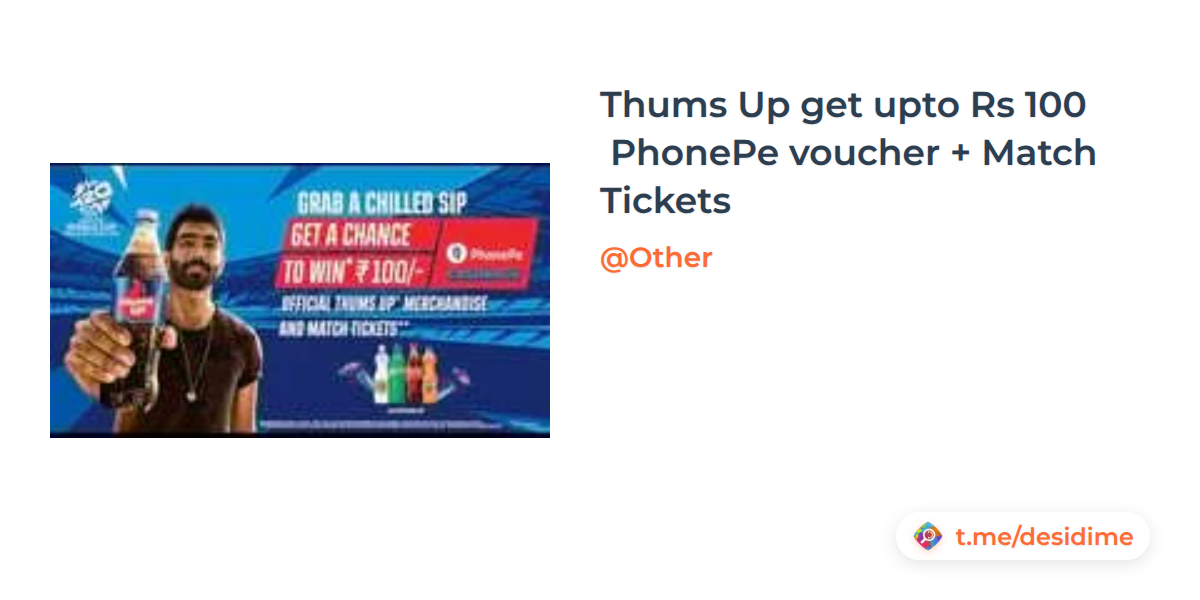 Thums Up get upto Rs 100 PhonePe voucher + Match Tickets