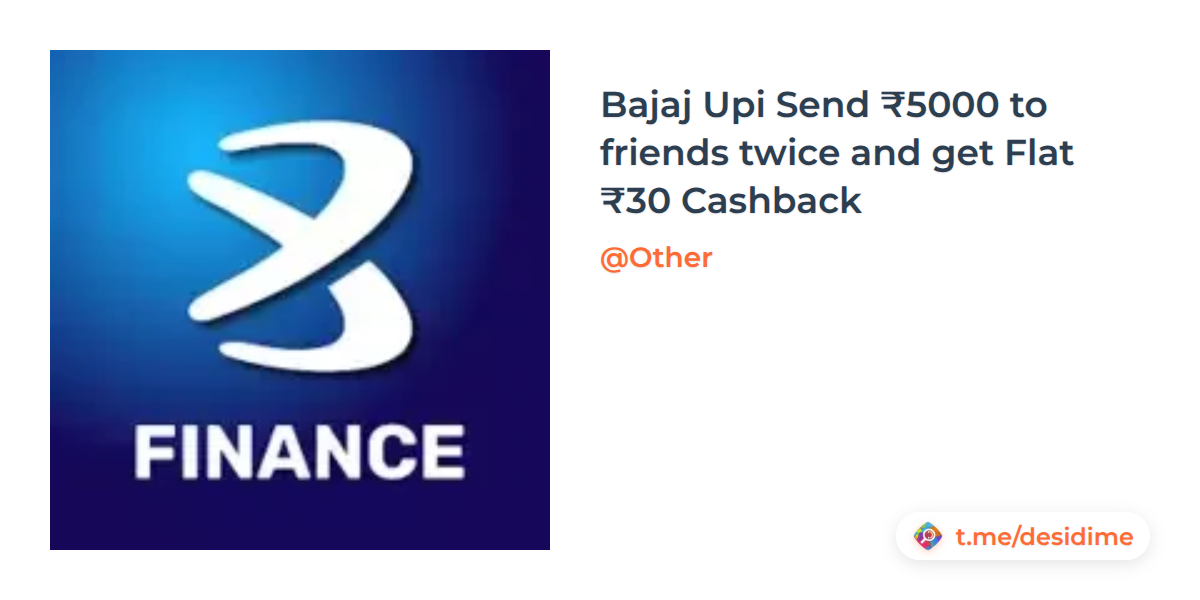 Bajaj Upi Send ₹5000 to friends twice and get Flat ₹30 Cashback