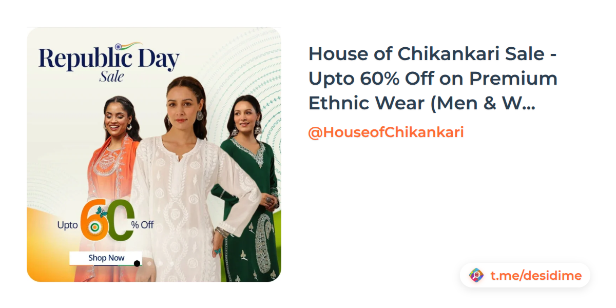 House of Chikankari Sale - Upto 60% Off on Premium Ethnic Wear (Men & Women)