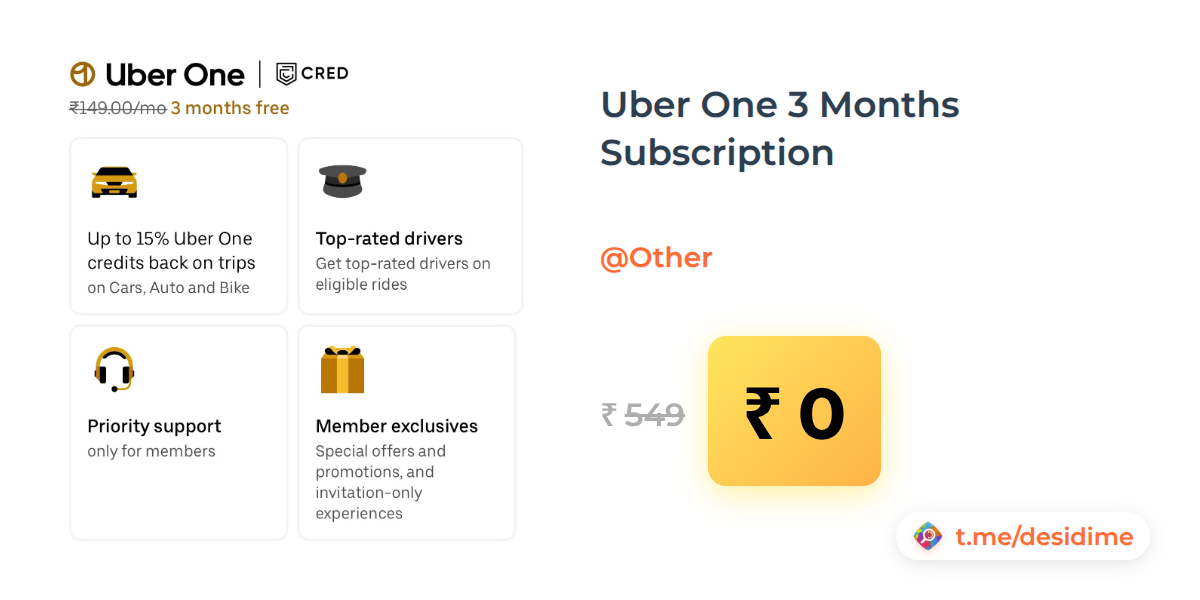 100% off on - Uber One 3 Months Subscription - Rs. 0