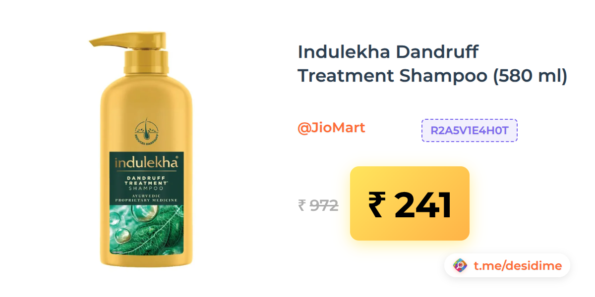 75% off on - Indulekha Dandruff Treatment Shampoo (580 ml) - Rs. 241