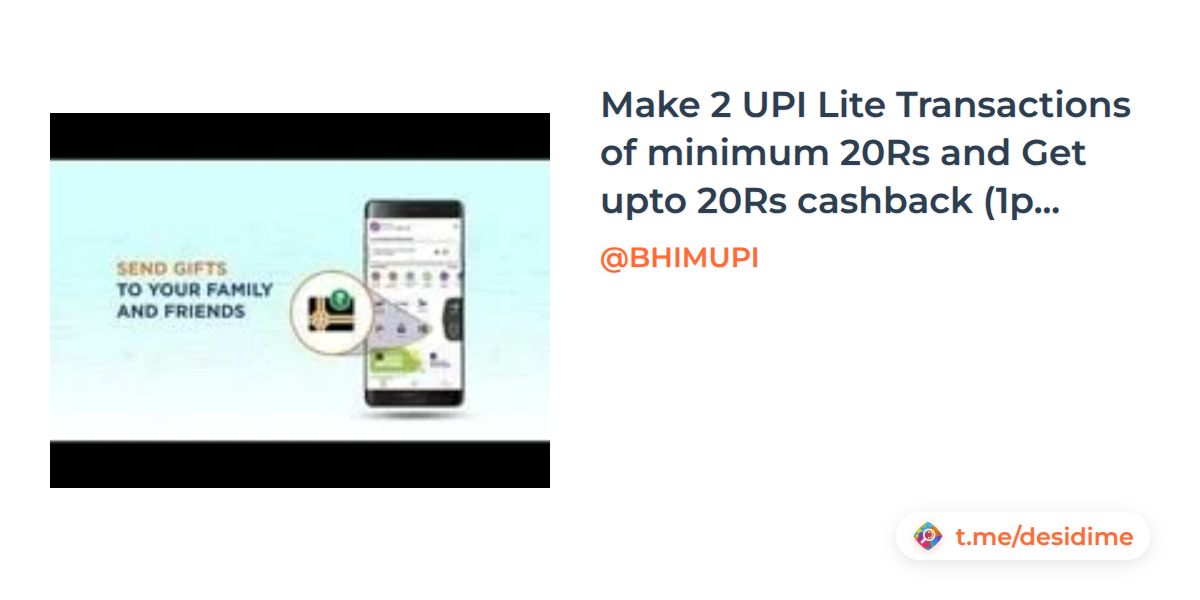 🌡442° - Bhim Make 2 UPI Lite Transactions of minimum 20Rs and Get upto 20Rs cashback (1pm to 5pm) (2nd February)