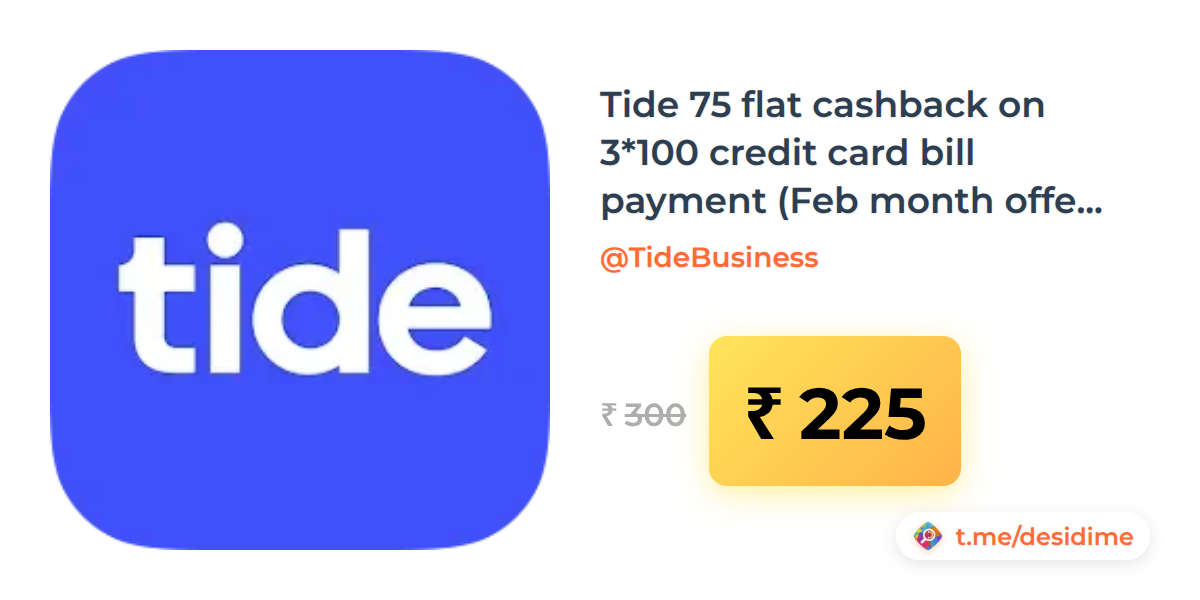 25% off on - Tide 75 flat cashback on 3*100 credit card bill payment (Feb month offer) - Rs. 225