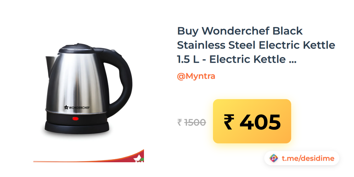 73% off on - Buy Wonderchef Black Stainless Steel Electric Kettle 1.5 L - Electric Kettle for Unisex 32396675 | Myntra - Rs. 405