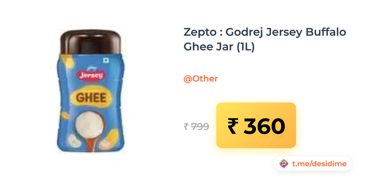 55% off on - Zepto : Godrej Jersey Buffalo Ghee Jar (1L) - Rs. 360