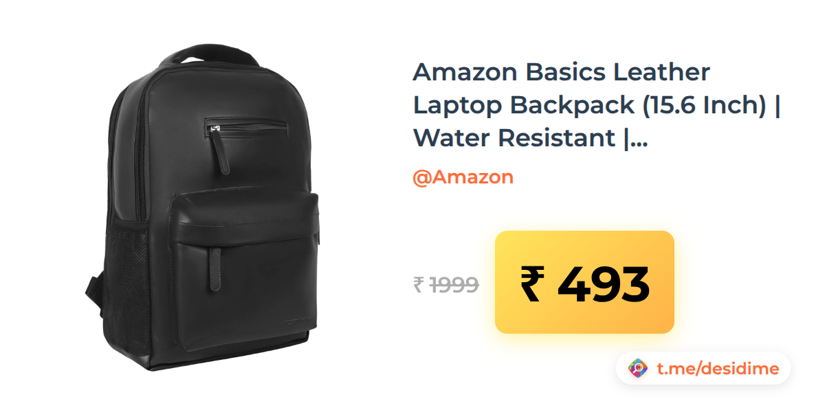 75% off on - Amazon Basics Leather Laptop Backpack (15.6 Inch) | Water Resistant | Large Storage Compartments | Breathable Shoulder Straps | for Office, Travel or College (Black) - Rs. 493