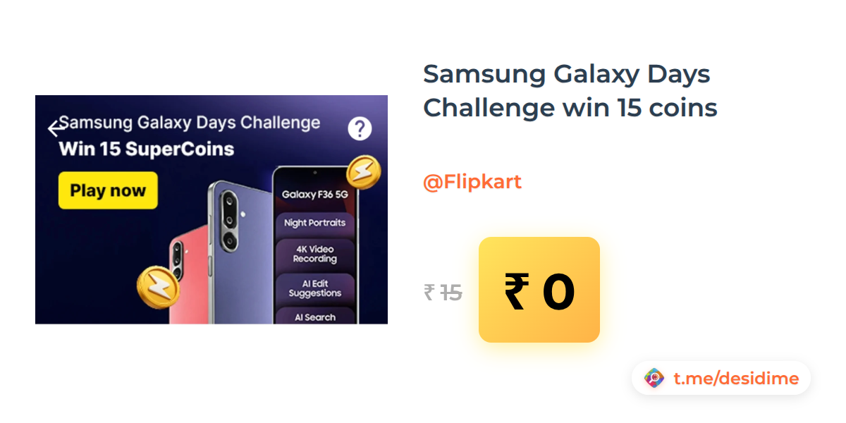 100% off on - Samsung Galaxy Days Challenge win 15 coins - Rs. 0