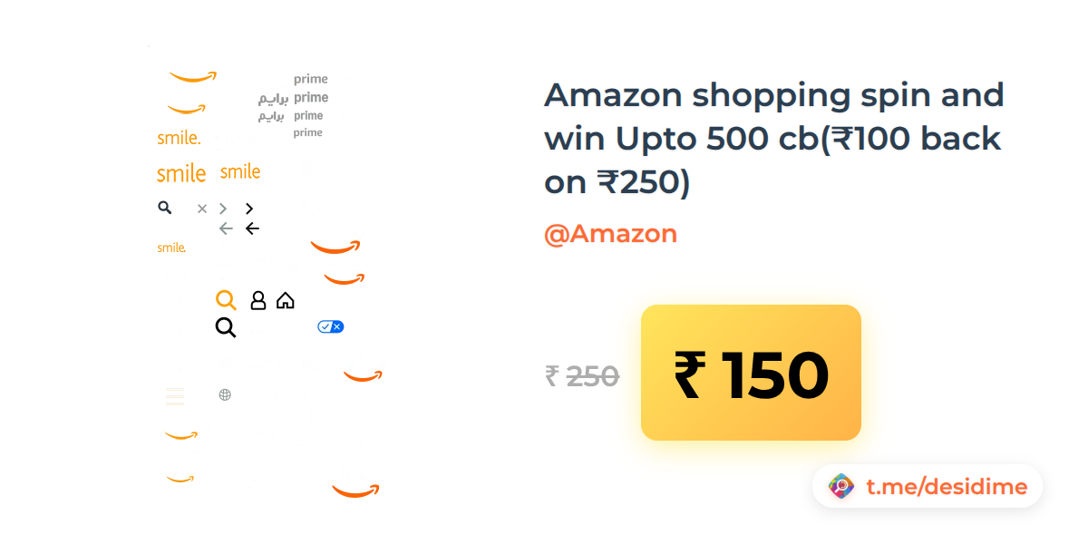 40% off on - Amazon shopping spin and win Upto 500 cb(₹100 back on ₹250) - Rs. 150