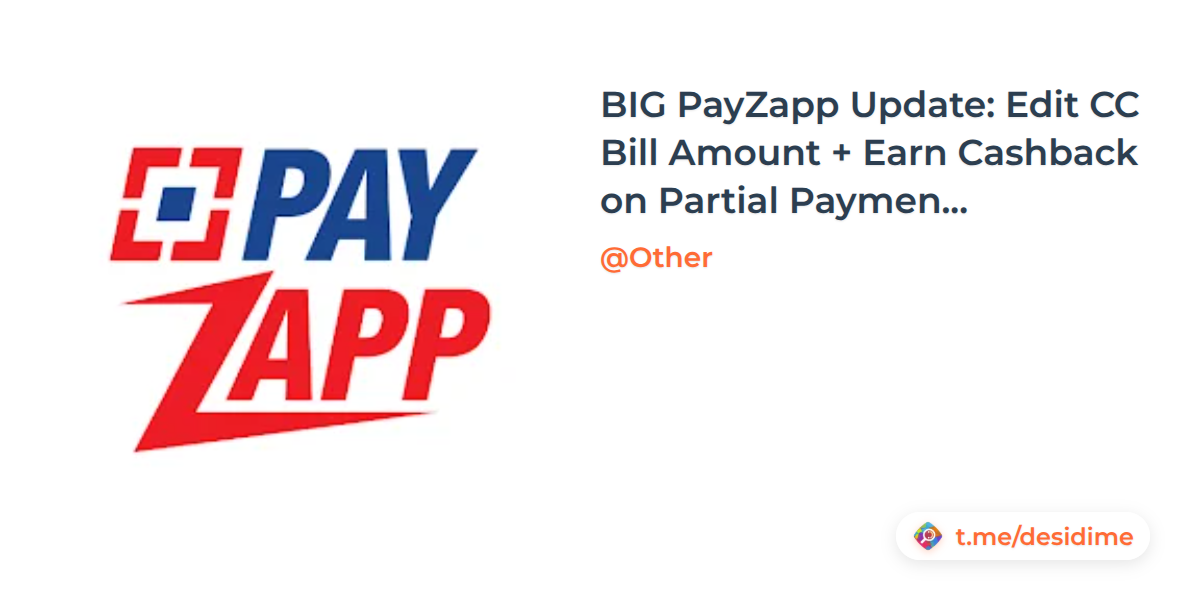 BIG PayZapp Update: Edit CC Bill Amount + Earn Cashback on Partial Payment (Best for Rewards DC)