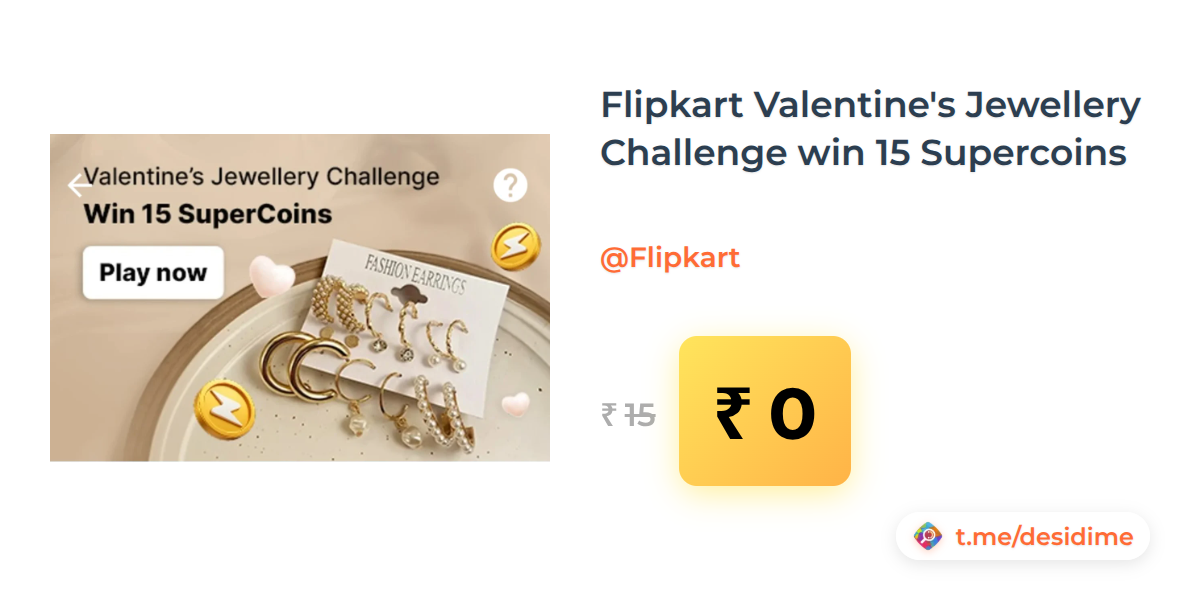 100% off on - Flipkart Valentine's Jewellery Challenge win 15 Supercoins - Rs. 0