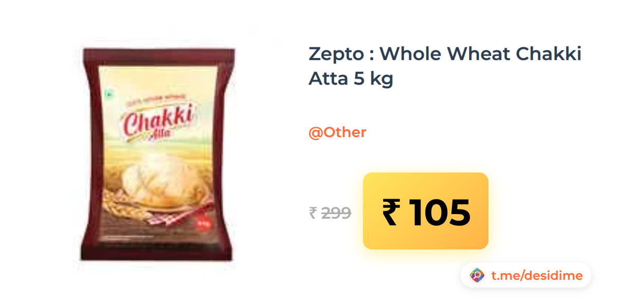 65% off on - Zepto : Whole Wheat Chakki Atta 5 kg - Rs. 105