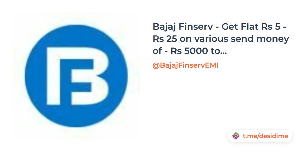 Bajaj Finserv - Get Flat Rs 5 - Rs 25 on various send money of - Rs 5000 to Rs 25000